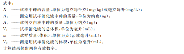 相同條件下,將試劑空白、樣品溶液分別引入儀器進行測定。根據(jù)回歸方程計算出樣品中砷元素的濃度。