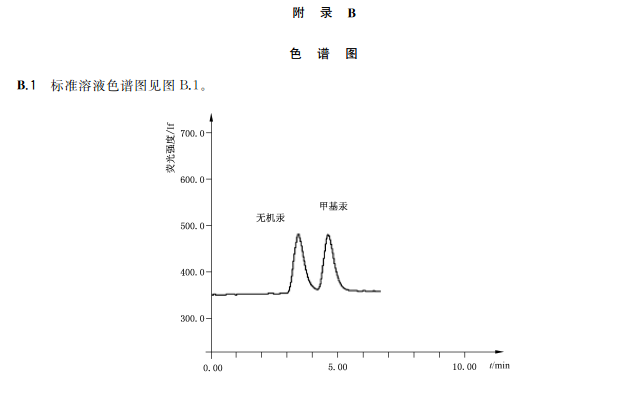試樣溶液的測定:將試樣溶液100μL注入液相色譜原子熒光光譜聯用儀中,得到色譜圖,以保留間定性。以外標法峰面積定量。平行測定次數不少于兩次。標準溶液及試樣溶液的色譜圖參見附錄B。