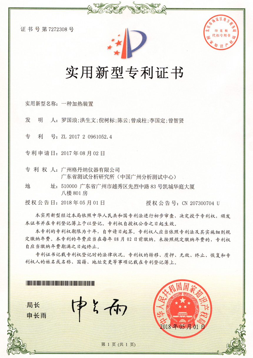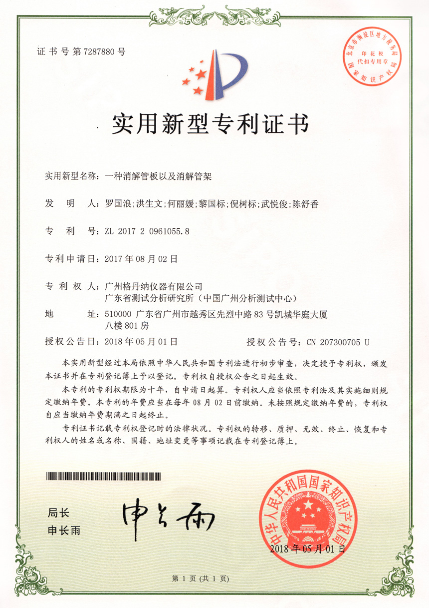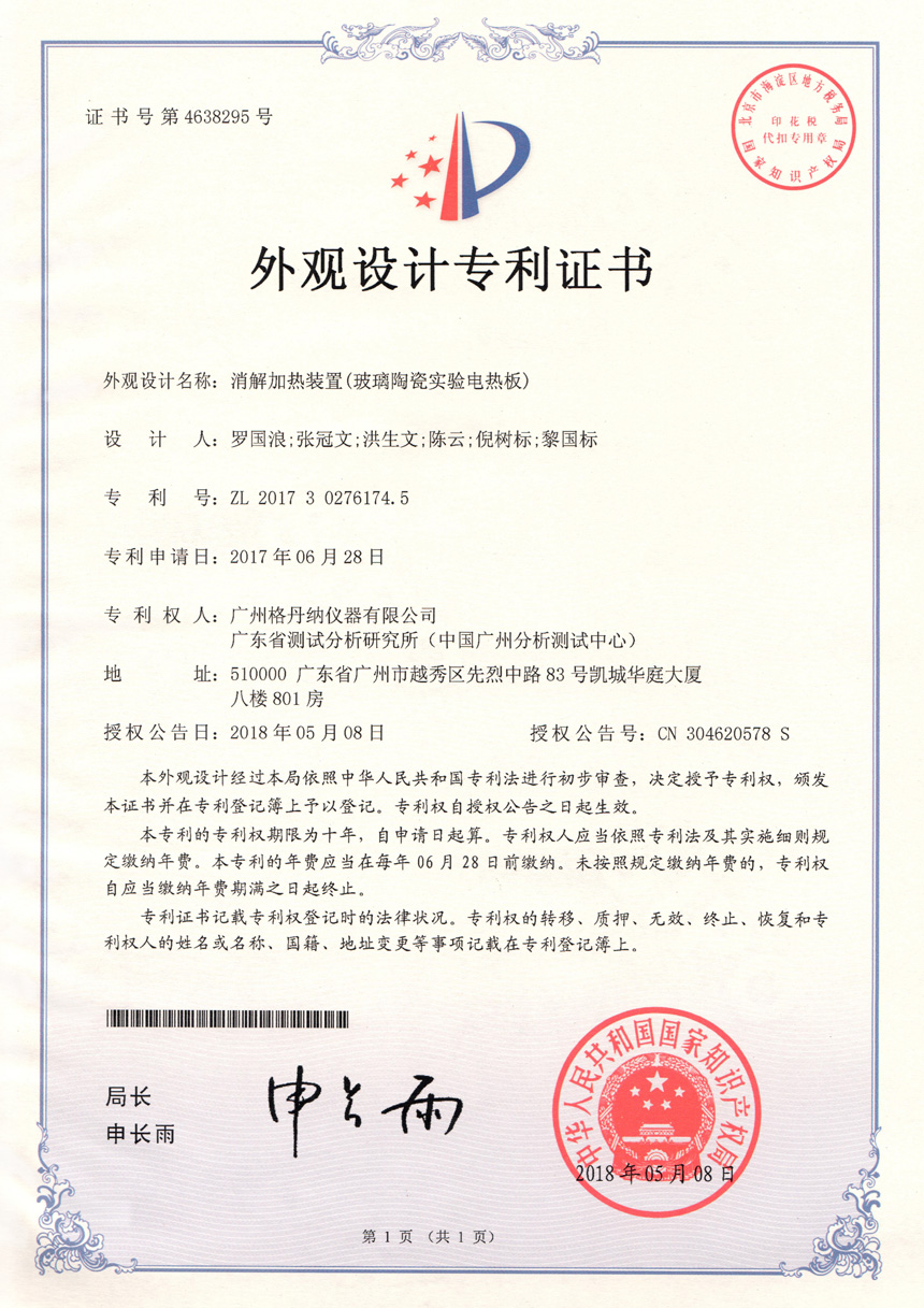 • 一種全自動消解儀-實(shí)用新型專利證書