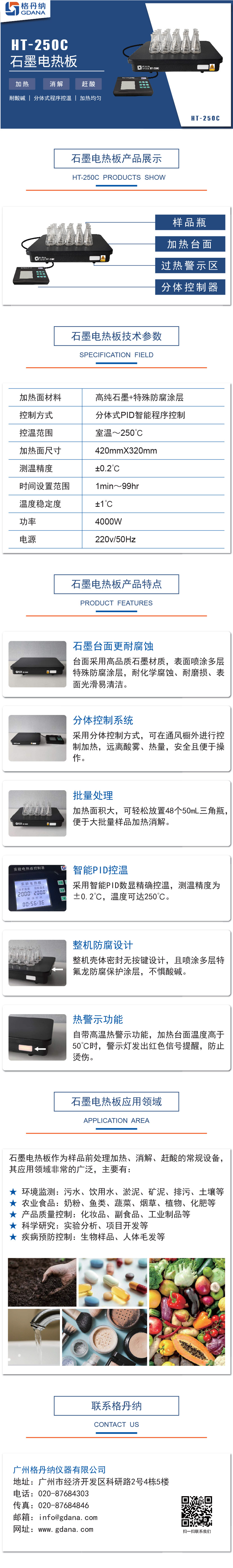 HT-250C石墨電熱板是用于化學(xué)試驗室樣品前處理中進行加熱、消煮、趕酸用的常規(guī)實驗設(shè)備。